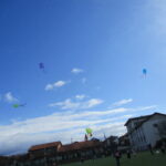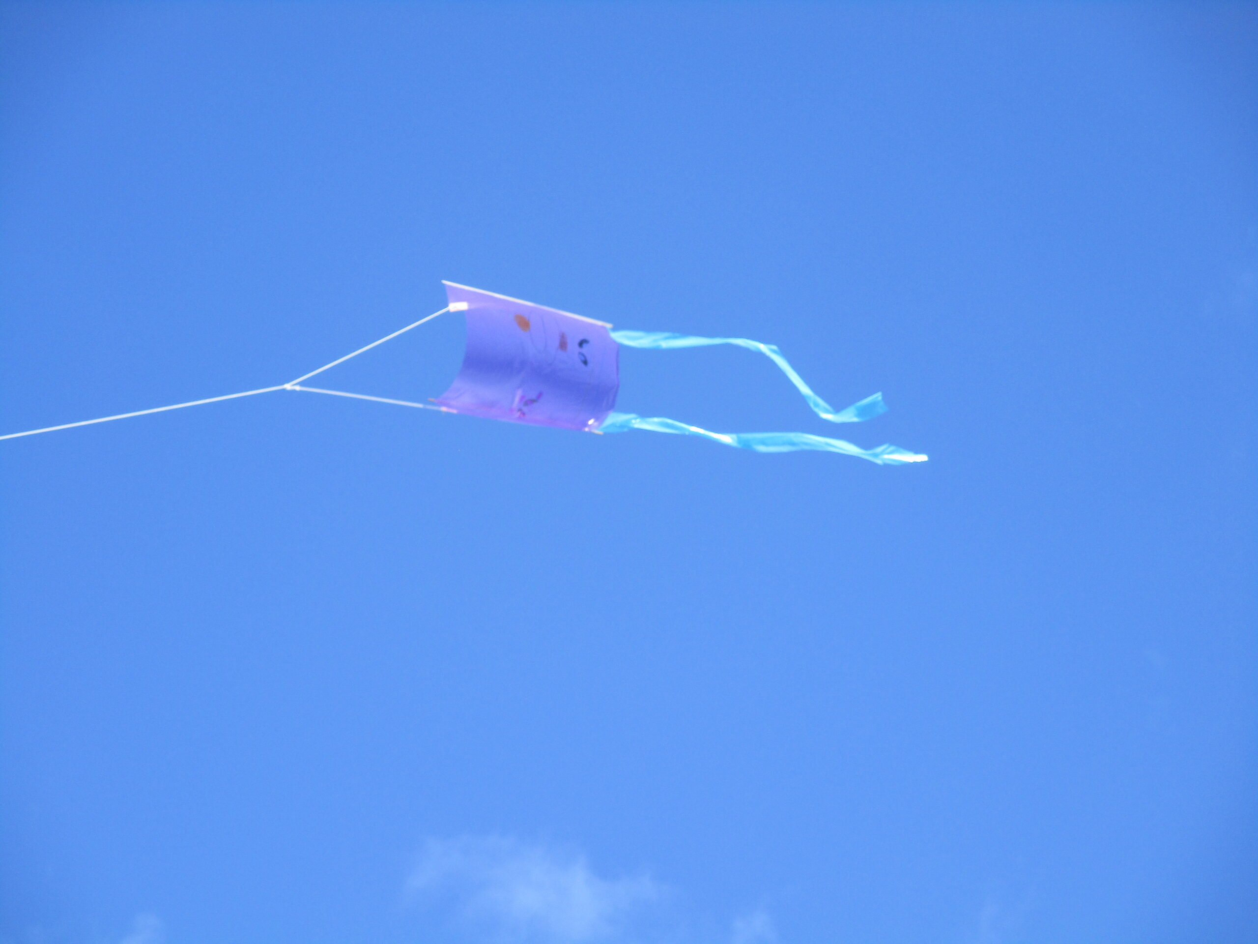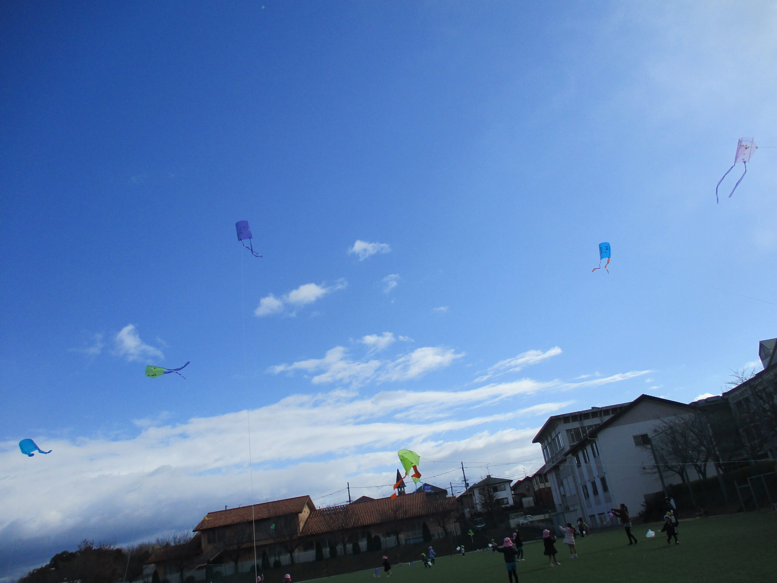 大学のグラウンドへ出て行って、たこ糸を少しゆるませると、凧は風をうけて巻いていたたこ糸が全部出るほど勢いよくあがっていきます。